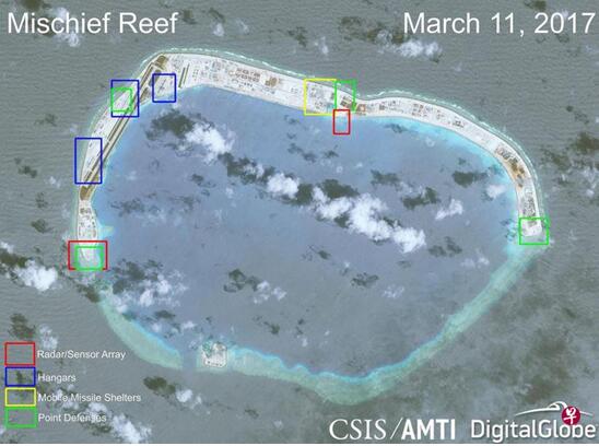 該組織公布多張3月衛星照片稱,中國在南沙群島永暑礁、渚碧礁和美濟礁上建成航海、航空、雷達和防御設施。其負責人波林說,從照片中可以看到永暑礁和渚碧礁有新的雷達天線陣,“所以預計很快將部署”。