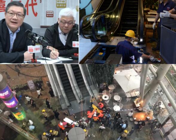 彭耀雄(上左角圖左)表示,朗豪坊發生的「通天梯」意外罕見。圖:星島