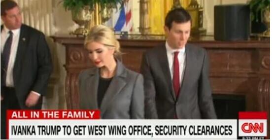 3月29日,美國總統特朗普的長女伊萬卡宣布,她將加入她丈夫的行列,正式成為一名聯邦政府職員,擔任其父特朗普在白宮的無償“總統助理”,而她的丈夫庫什納目前職位是高級顧問。
