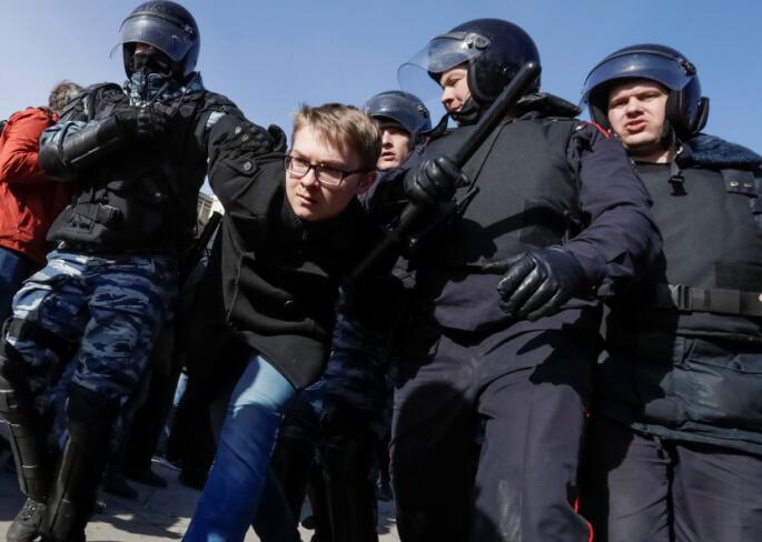 26日遊行當天,俄出動大批警力,逮捕超過一千名非法遊行人員。資料圖片