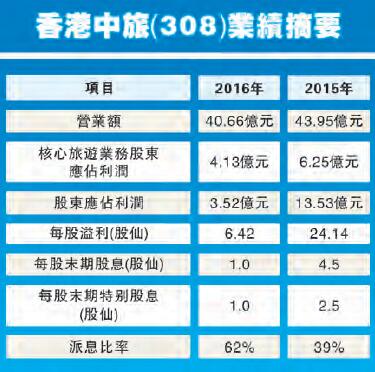 【香港商報网訊】實習記者邱媛媛報道:香港中旅(308)去年純利3.52億元,按年下跌74%。執行董事常務副總經理張星表示,去年核心旅游業務收入下滑,相信通過今年新的旅游區的創新,包括嵩山、沙坡頭景區的擴容以及營銷力度的加強,預計旅游區的收入會有所好轉。