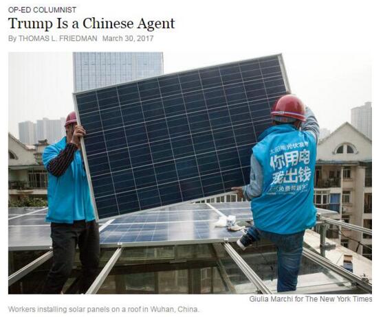 【觀察者網綜合報道】“特朗普是普京的代理人”,這個論調在美國不新鮮。不過《紐約時報》3月29日刊登了一篇文章,作者是托馬斯·弗里德曼。對,就是寫《世界是平的》那位。盡管美國總統特朗自當選時就不斷懟中國,但弗里德曼指出,說特朗普總統是否是俄羅斯的伙伴,這些是煙幕彈,特朗普其實是一名中國代理人!他明顯在努力使中國再次變得偉大。