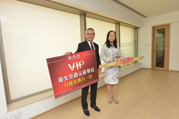 繼馬鞍山星漣海,長實另一新盤北角維港頌迅即加快銷售步伐,昨率先開放1個無改動示範單位,長實地產投資董事黃思聰表示,本周六、日會以預約方式,開放予VIP客戶參觀;項目最快下周開價,涉及至少76伙,戶型多元化,包括1至4房臨海樓王單位。又賣關子指,付款方式將會「好精采」。