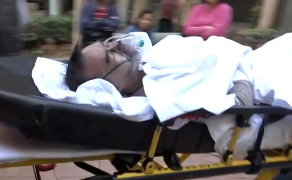 有年老居民由消防員帶落樓,途中使用了消防員提供的氧氣面罩。