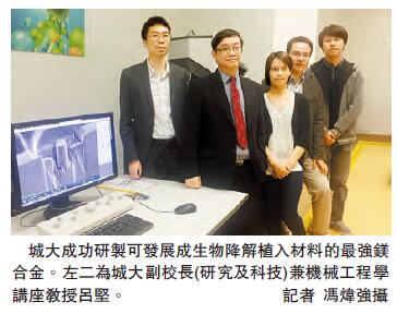 【香港商報网訊】記者馮煒強報道:城市大學團隊成功研制全球首創的超納鎂合金材料,副校長(研究及科技)兼機械工程學講座教授呂堅表示,鎂基超納雙相-玻璃納米晶材料將會成為新的原型材料,可用於生物降解植入,具有超高耐磨性能,病人可因此避免進行第二次手術以取出零件。是次研究成果剛於國際頂尖科學學術期刊《自然》上發表。
