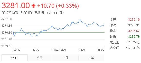 截至收盤,滬指漲0.33%報3281.00點,成交2623億元;深成指漲0.27%報10656.17點,成交2908億元。