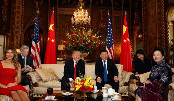 下午5時許,習近平和夫人彭麗媛抵達海湖莊園,特朗普和夫人梅拉尼婭在停車處熱情迎接。兩國元首夫婦合影留念,親切交談。兩國元首夫婦共同欣賞了特朗普外孫女和外孫演唱中文歌曲《茉莉花》并背誦《三字經》和唐詩。
