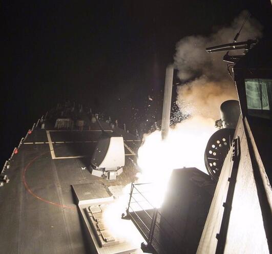 針對本周二敘利亞疑似化學武器襲擊事件,美國已向敘利亞發射近60枚戰斧導彈,瞄準機庫和飛機,兩艘海軍驅逐艦向敘利亞發起了雷神導彈。