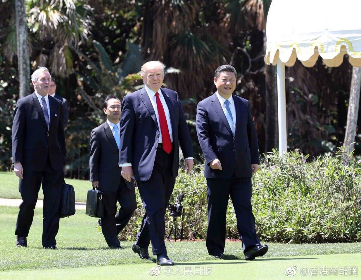 習近平於當地時間6日和7日同特朗普就中美關系以及共同關心的國際和地區問題廣泛深入交換意見。這是美國新政府就職以來中美兩國元首首次會晤。進餐前特朗普表示,相信與習近平已建立友誼,兩人會有非常好的關係。他還開玩笑地說:「至今我(在會談中)甚麼也沒得到,完全沒有。」