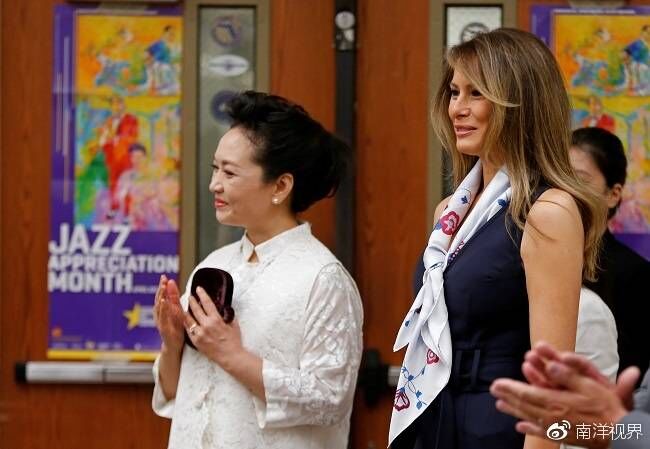 當地時間7日上午,應美國總統夫人梅拉尼婭邀請,國家主席習近平夫人彭麗媛參觀位於佛羅裏達州西棕櫚灘市的巴克藝術中學並與孩子們互動。