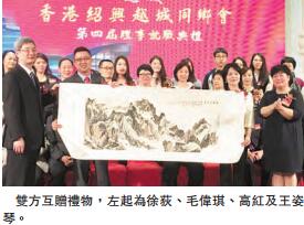 席間有精采的文藝表演,還有大抽獎助興,獎品非常豐富。賓主舉杯暢飲,互訴鄉情,氣氛熱烈。香港紹興越城同鄉會新屆理事會成員包括:會長高紅,常務副會長章祥霞、方達成、石文輝、李建中、陳潔、王麗珍、尹慧芳,副會長陳紅花、陳紹峰、湯霆雄、吳天娜、胡棟梁、潘瑋、程祁蕊等。
