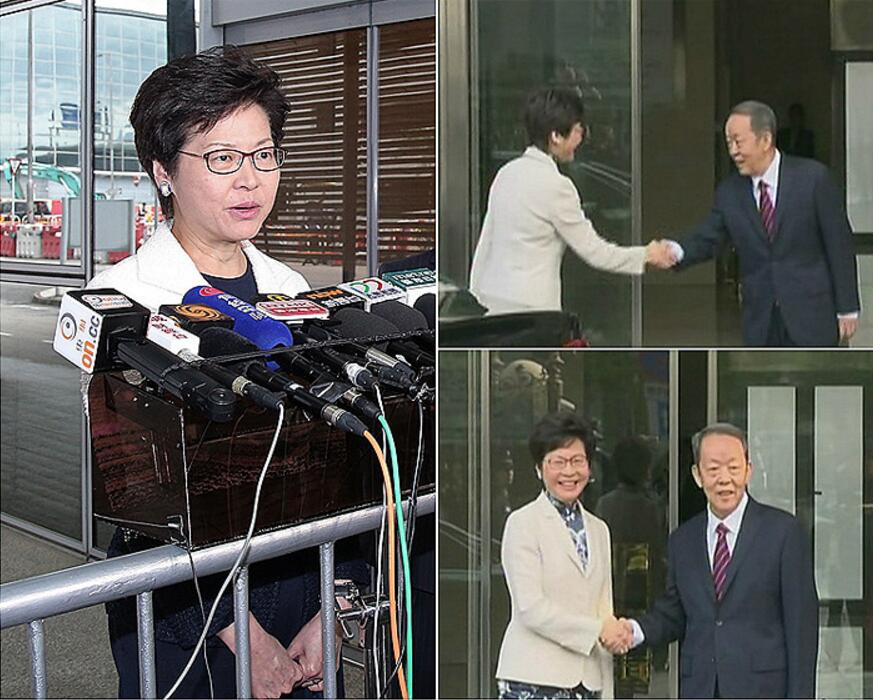 【橙訊】正在北京準備接受任命的候任行政長官林鄭月娥,早上先拜會港澳辦主任王光亞,逗留兩小時後離去,未有回應記者提問。王光亞親自在門口迎接林鄭月娥抵達及離開,兩人並握手讓記者拍照。
