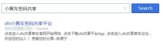 隨意通過搜索引擎,我們都能看到這樣的頁面。由于早先投放車輛時都是采用了機械鎖,小黃車一片苦心爲用戶打造的開鎖方式,却被有心人作爲牟利工具:每一輛小黃車只有一個固定的解鎖密碼,所以只要有人記住該車密碼,就可以繞過手機App的計費系統,直接開鎖,免費騎。
