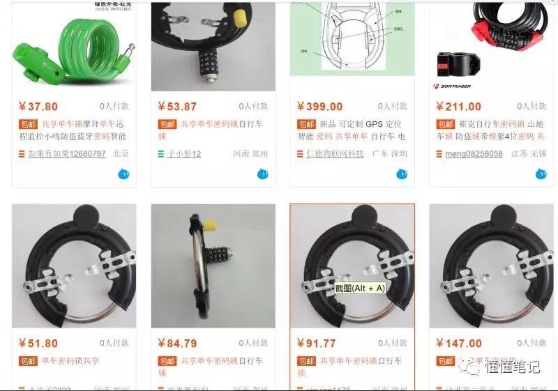 最近有媒體在某寶上發現,有不少商家在出售所謂的“共享單車密碼鎖”,這些商家都聲稱自己是相關共享單車的生産廠家,他們出售的“密碼鎖”價格大多在十幾元到五十元之間,而且會包郵。用戶購買他們的密碼鎖後,他們宣稱將教用戶把共享單車上原來的鎖拆下來幷換成購買的鎖,且萬無一失。購買者可以通過這樣的方式,達到長期私占單車的目的。即便在4月初,通過搜索仍可以在某寶平臺發現類似的賣家,而且有些已經顯示有了成交量。懂懂筆記也在某寶上嘗試搜索“小黃車同款密碼鎖”,搜索到的結果還真不少。