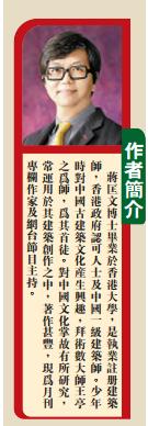 蔣匡文博士畢業於香港大學,是執業註冊建築師。香港政府認可人士及中國一級建築師。少年對中國古建築文化產生興趣,拜術數大師王亭之為師,為其首徒。對中國文化掌故有所研究,常運用於其建築創作之中,著作甚豐,現為月刊專欄作家及網台節目主持。