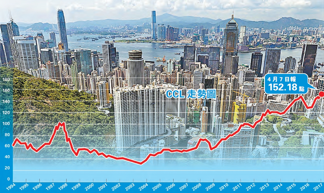中原城市領先指數(CCL)連續7周創新高,最新(上周五)報152.08,按周升0.86%,并連升9周,創近10年最長升市。有分析稱,最新CCL尚未反映新盤過去兩周銷情,料及至復活節過后,升勢將會加快,到6月可望升至160水平。