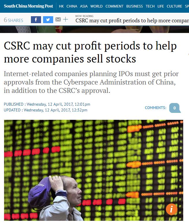 周三(4月12日)據香港《南華早報》報道,中國證監會據稱考慮縮短對申請IPO的企業的盈利時間要求,監管層有意願將IPO過會的審批速度維持在約10家/周。