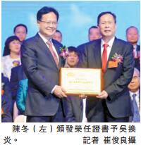 【香港商報网訊】記者曾美玲報道:世界福州十邑同鄉總會日前假香港會展中心大會堂舉行第十四屆理事就職典禮,吳換炎榮膺新任總會長。中華全國歸國華僑聯合會主席林軍,國務院僑務辦公室副主任李剛,中聯辦副主任陳冬,全國政協辦公廳副秘書長鄧宗良,福建省委常委、省委統戰部部長雷春美,福州市委副書記、市長尤猛軍等應邀主禮,與全場近2000名鄉親父老共聚一堂,恭賀新一屆理事就職。