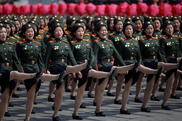 ▲雄赳赳的朝鮮女兵經過金日成廣場。路透社