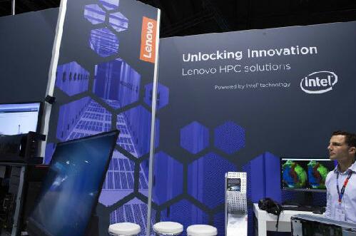 2016年6月20日,工作人員在德國法蘭克福國際超算大會聯想展位忙碌。新華社