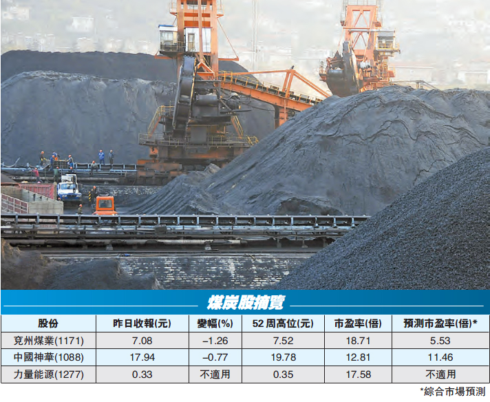 業績期期間,煤炭股也交出了一份理想的成績單。例如﹕兗州煤業純利按年大增9倍至16.5億元(人民幣,下同),力量能源(1277)去年收益約10.52億元,毛利按年升1.34倍,至3.01億元,扭虧為盈,錄得純利1.38億元;中國神華的稅後盈利也上升44%,持續增派特別股息。