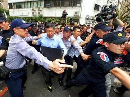 連台北市長柯文哲也遭波及,不僅被擋在“立法院”外面,還被人趁機揍了幾拳。