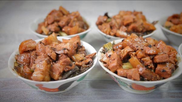 薑豉,家家戶戶常備的調料;豬肉,也是農村可見的食材。在客家大娘的巧手下,它們有了最完美的結合,幻化成一股濃得化不開的味道。豬肉缽,既盛載了客家菜的味道,也盛載了客家人的濃情。