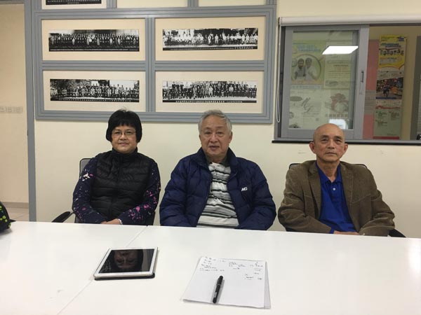 3位客家廚師齊集坑口鄉事委員會會址,左起:邦嫂、成伯、成子良。