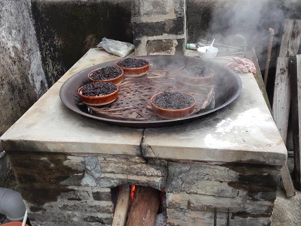 一缽缽滿載鄉情的豬肉缽在柴火大灶上蒸煮。