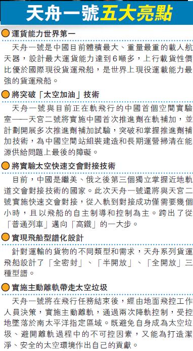 天舟一號攜「大包裹」赴天宮