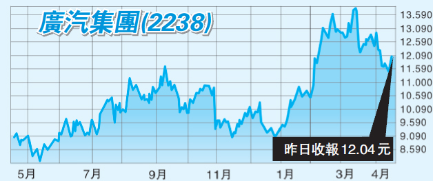 廣汽股價近月由高位14.1元回落,其曾見近3個月低位,現於12元附近整固。汽車股一直獲北水青睞,投資者可留意廣汽會否在短期內再次得到北水的關注。而且,投資者亦可憧憬廣汽今年或派發成立20周年的特別股息。