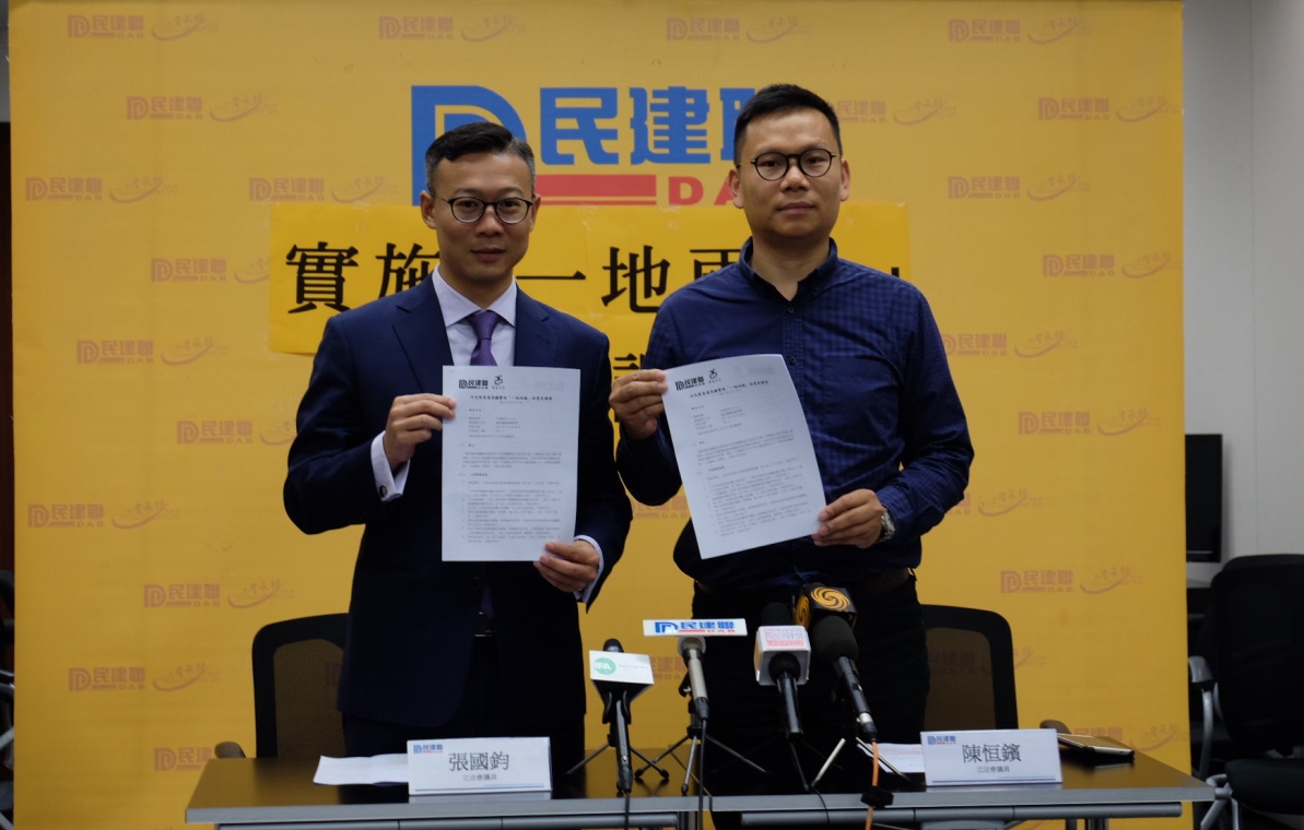 民建聯立法會議員張國鈞及陳恒鑌昨日召開記者會,發表「市民對香港高鐵實施『一地兩檢』」的意見調查。調查於4月12至18日進行,以電話隨機抽樣方式訪問了579位市民。