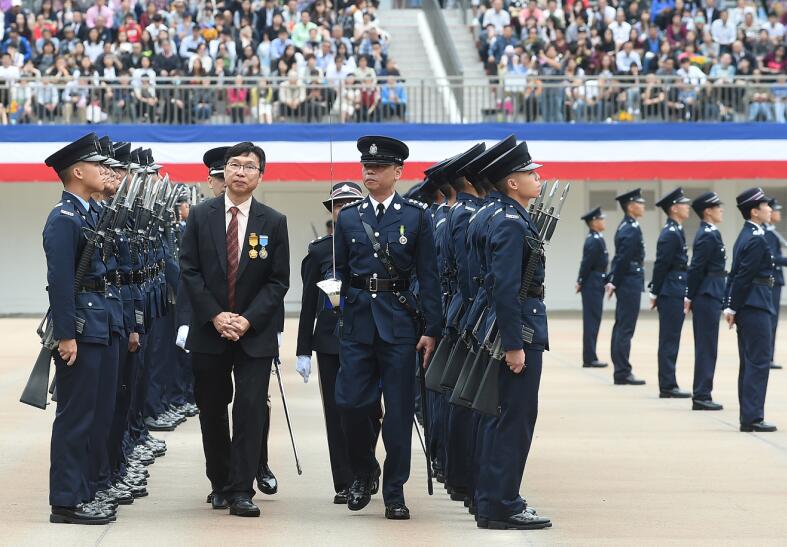 張建良主持檢閱儀式上致辭時說:「警務人員每天都要面對群眾,在執勤過程中,難免有些情況會令你們感到吃力不討好,甚至灰心氣餒,希望你們時刻堅守崗位,沉著應對,你們的專業精神必定能得到社會和廣大市民的信任和尊重。」