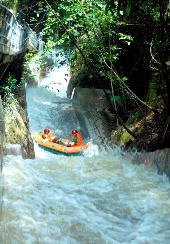 羅浮山漂流位于羅浮山中心景區朱明洞之東,交通便利。羅浮山漂流由羅浮山纜車公司投資興建,全長5公里,漂流時間2.5小時。游客乘漂流艇順流而下,沿途紅花綠樹,曲徑通幽,奇石異草,氣象萬千,令人置身于原始、野曠、神秘履帶長廊的天然氧氣吧中。
