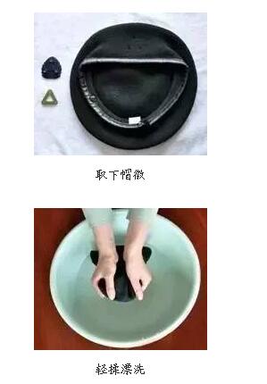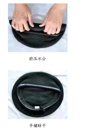 手洗時,先將貝雷帽帽徽取下,再將帽子放入含有少量中性洗滌劑的涼水中浸泡5分鐘,輕揉后用清水漂洗干凈即可;