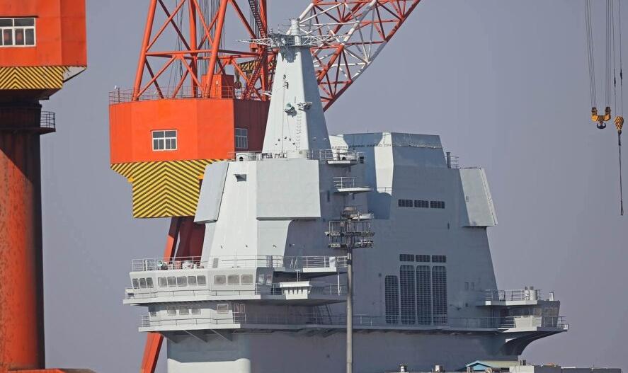 001A型航母吸取了「遼寧」號航母的使用經驗,對飛行甲板的布局進行了調整,將艦島位置往右側甲板邊緣移動,取消艦島右側的人員通道。這等於拓寬了艦島左側停機準備區的面積,可以讓更多的飛機在此整備,。艦島外形大有變化,縱向拉高、橫向縮短,既抬升了相控陣天線的裝設位置,增加了內部空間,也減小了甲板占用面積。從外形直觀看,就是艦島顯得更高了。其中最明顯的,是艦島頂部最高處的綜合隱身桅桿的長度顯著增加,這使得頂部即將裝設的對空對海搜索雷達等設備的高度相應更高,目標探測和作用距離也更遠。
