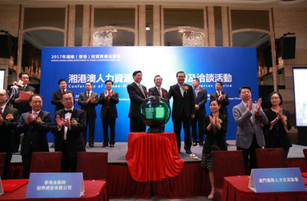 【香港商報網訊】記者趙啟東、肖建花實習記者鄒子聰報道:由湖南省政府主辦、省人力資源和社會保障廳承辦的湘港澳人力資源服務協作簽約洽談活動,昨日在香港隆重舉行。本次活動是2017年湖南(香港)投資貿易洽談周系列主題活動之一,湖南省副省長向力力、省人力資源和社會保障廳廳長賀安杰等領導,全國政協委員、民建聯顧問譚耀宗等嘉賓出席了活動。