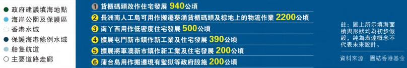 昨日,團結香港基金發表「香港2030+:跨越2030年的規劃遠景與策略」意見書,倡議政府未來推動大規模填海計劃—「新玫瑰園計劃」,包括於長洲南部填海2200公頃作碼頭作業和棕地作業發展,在南丫島西岸填海500公頃作低密度住宅發展,擴展屯門、將軍澳新市鎮分別390公頃及200公頃用作新工業及住宅發展,以及將葵涌貨櫃碼頭搬遷至長洲南、赤柱監獄搬遷至蒲臺島等,以騰出空間發展住宅及公共服務。