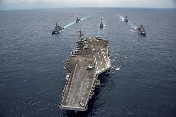 NHK與《日本經濟新聞》稱,這支美日艦隊23日便在菲律賓外海會師,包括美軍的「卡爾文森」號航母、導彈驅逐艦「米高梅菲」號和導彈巡洋艦「尚普蘭湖」號,還有自衛隊的兩艘護衛艦「五月雨」和「足柄」,但直到28日仍在沖繩一帶,仍未通過對馬海峽進入日本海。但美聯社昨日發布的照片顯示,「卡爾文森」號已經進入長崎外海,往日本海航行。
