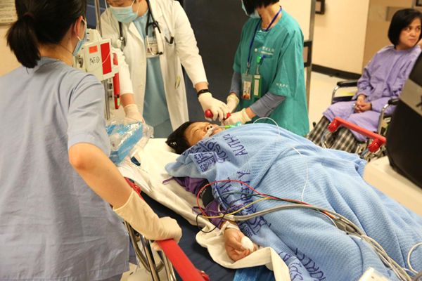 冒險救工友遇溺的柯楚如延醫不治,圖為其獲送院時攝。