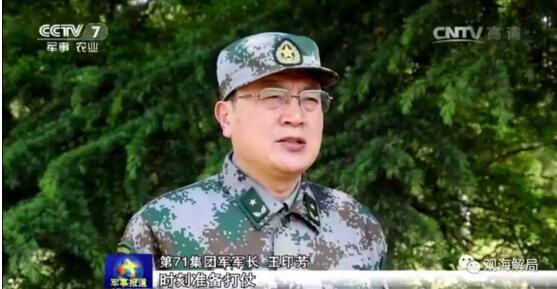 在4月28日央視第七頻道的報道中,以71集團軍軍長出現的王印芳表示,在這次改革轉型中,我們要緊緊圍繞時刻準備打仗、抓緊提升作戰能力這一核心要求,進一步強化部隊戰斗隊意識,堅持戰斗力標準,抓實實戰化訓練,保持部隊箭在弦上的戰備狀態,努力建設一支召之即來、來之能戰、戰之必勝的精兵勁旅。