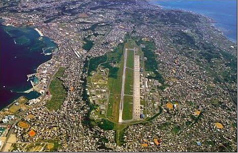 資料圖:普天間美軍基地被居民區包圍