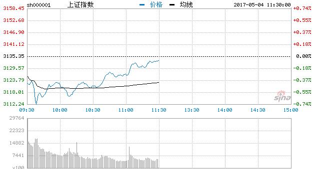 新浪財經訊 5月4日消息,滬深兩市早盤低開,隨後小幅殺跌,受人氣指標板塊“雄安概念”集體上漲影響,前期超跌板塊均出現強勢反彈,滬指及創指均出現反彈走勢,形成“一底比一底高”,創指翻紅。截止上午收盤,滬指報3133.21,跌0.07%,創指報1855.77,漲0.83%。