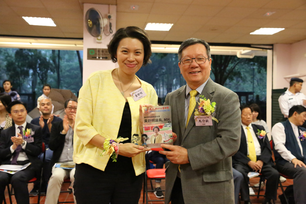 馬介欽(右)致送紀念品予主禮黃舒明。