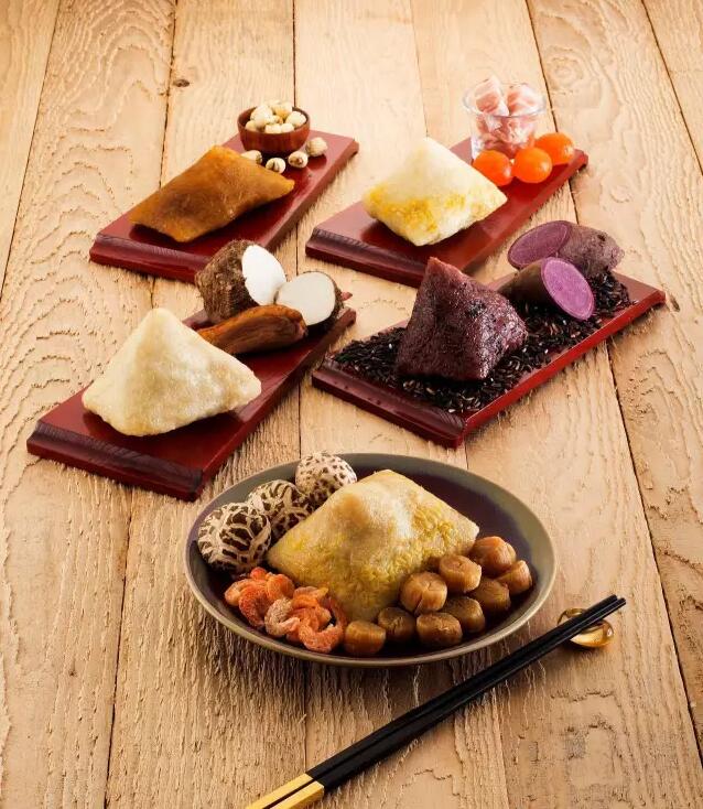 端午臨近糭香飄飄!海皇粥店今年推出五款糭子,除了傳統風味的經典蛋黃鹹肉糭及蓮蓉鹼水糭,還帶來全新的紫薯紫米糭及香芋煙鴨胸糭,前者以健康紫米與糯米包裹著紫薯蓉,口感煙韌清甜;後者則是以芋頭蓉配上嫩滑煙鴨胸作為內餡,濃郁惹味。至於最後的原粒瑤柱家鄉糭內有原粒瑤柱、花菇及蝦米等,分量足,款款各具特色。
