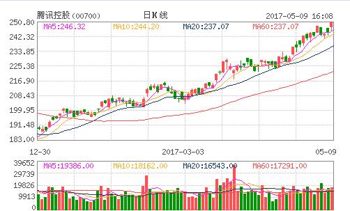 騰訊“五窮月”開門紅 股價突破250港元再創上市新高