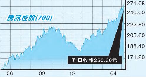 恒指昨日早段受內地股市跌幅擴大影響,一度倒跌28點,其后愈來愈有力,單日大逆轉,收市升逾300點,以近全日高位收市,大升311點,收報24889點。「股王」騰訊控股(700)愈升愈有,股價再破頂,現報250港元,升2.12%,成交金額35億元。