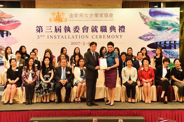 【香港商報網訊】記者李嘉倩報道:金紫荊女企業家協會第三屆執委會就職典禮前日假港島海逸君綽酒店隆重舉行,丘璟珊榮膺主席,彭芷君任首席會長。食物及衛生局局長高永文擔任主禮嘉賓,與近250位中港政商名人、社團友好及該會會員共同見證新一屆執委會的誕生。丘璟珊致辭時表示,未來兩年定必全力以赴,與各執委會委員及全體會員團結一致,提高女性地位,鼓勵社會更平等對待在職婦女。