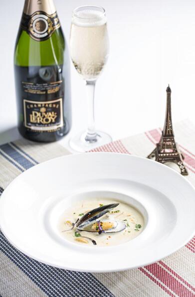 加入香檳汁的青口及蔬菜濃湯,味道更清新怡人。