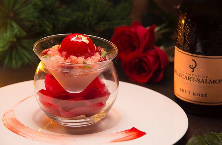 玫瑰香檳碎冰配乳酪及白朱古力慕絲賣相已很吸引。